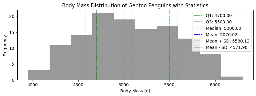So far we’ve discussed the following summary statistics: mean, median, standard deviation, and quantiles.