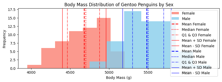 Here, the mean for the entire dataset is on the large end for a female, but on the small end for a male.