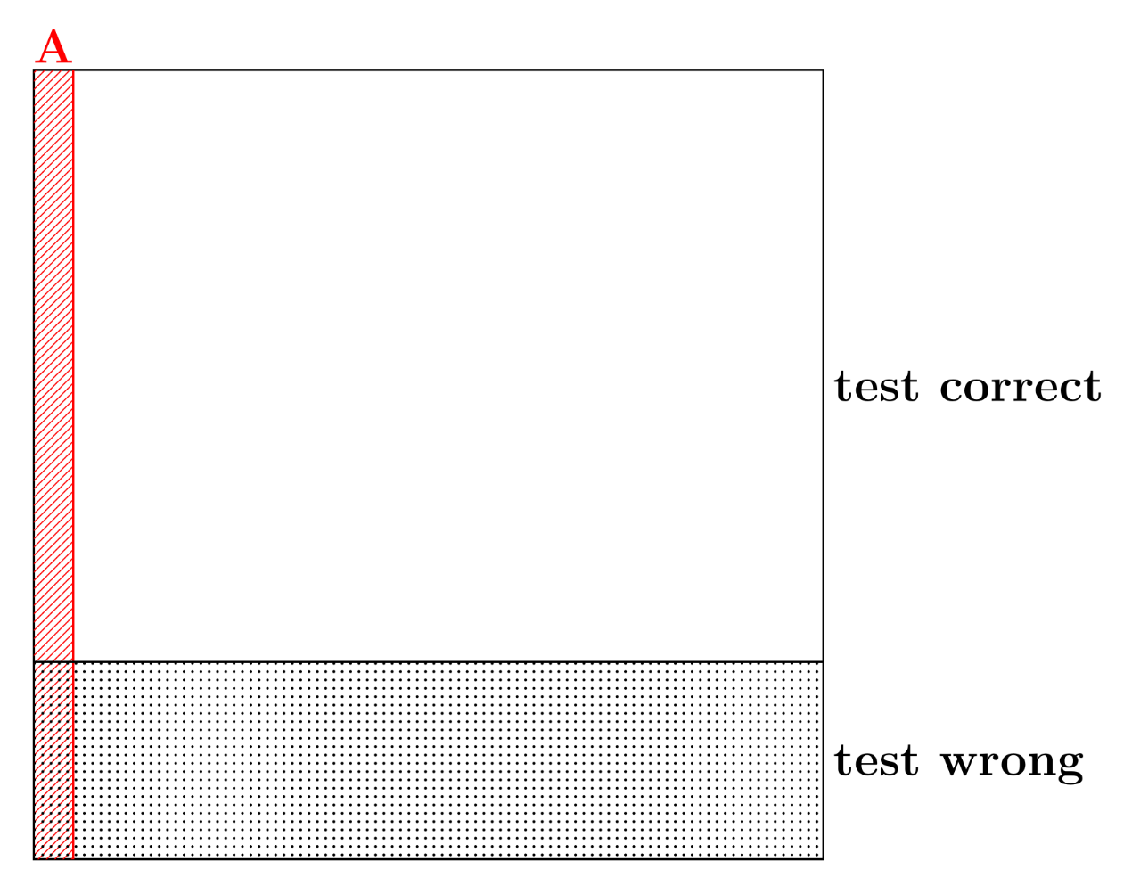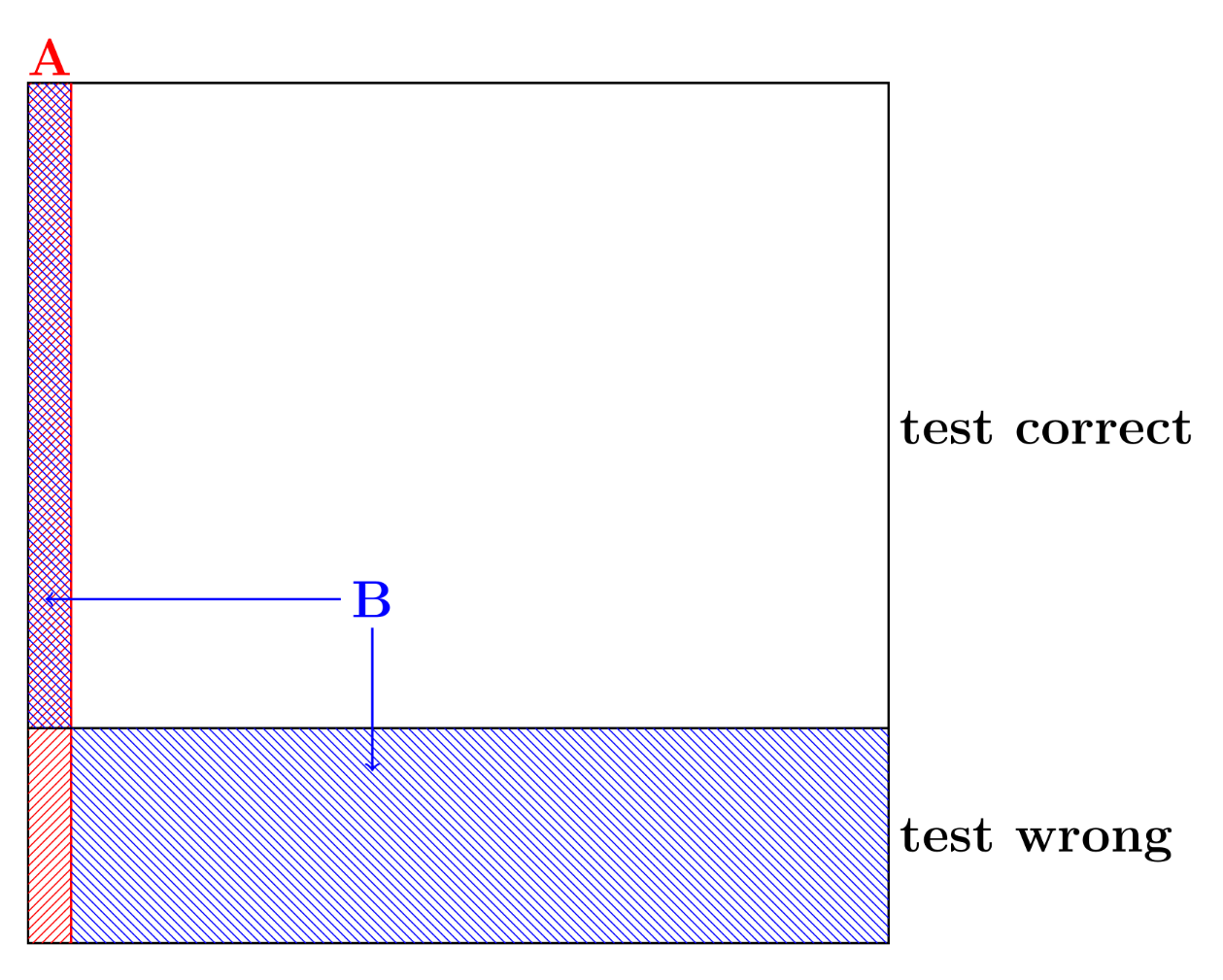 But, taking the test accuracy for our confidence \(\Pr[A \mid B]\) ignores the fact that the disease is very rare, affecting only \(1\%\) of the population.