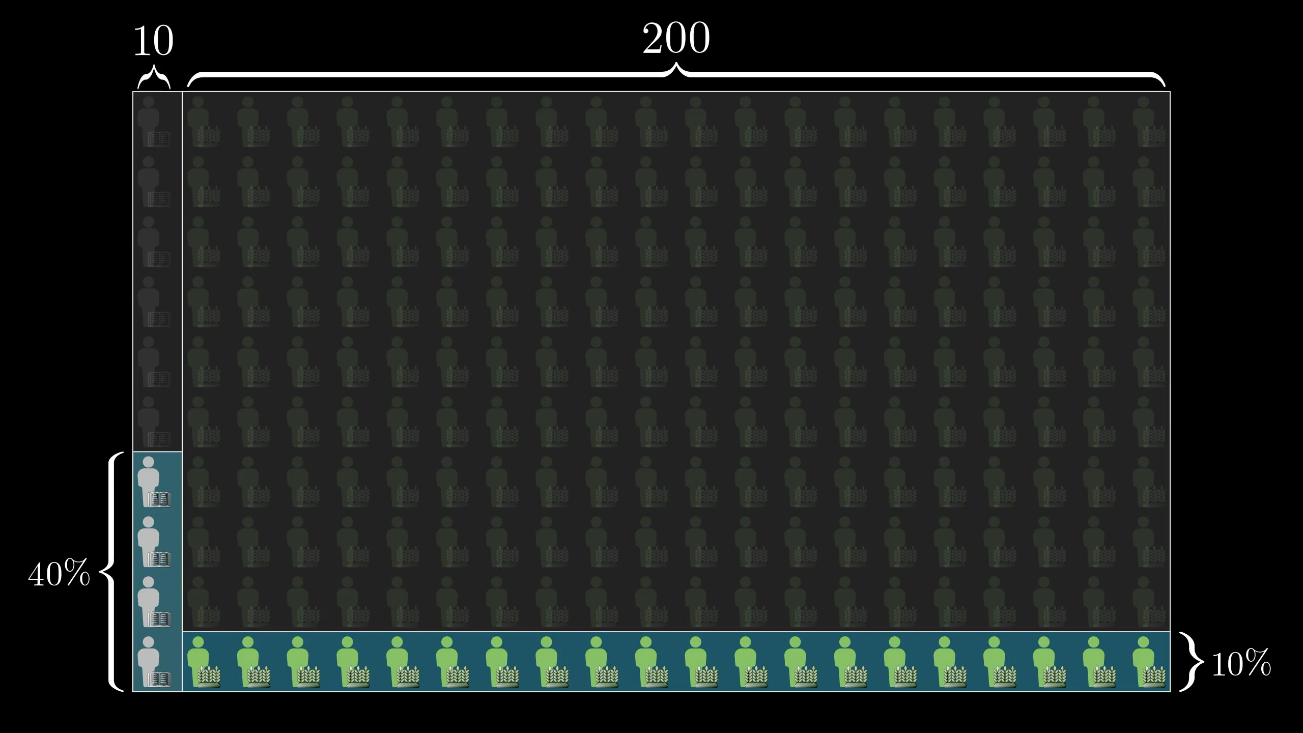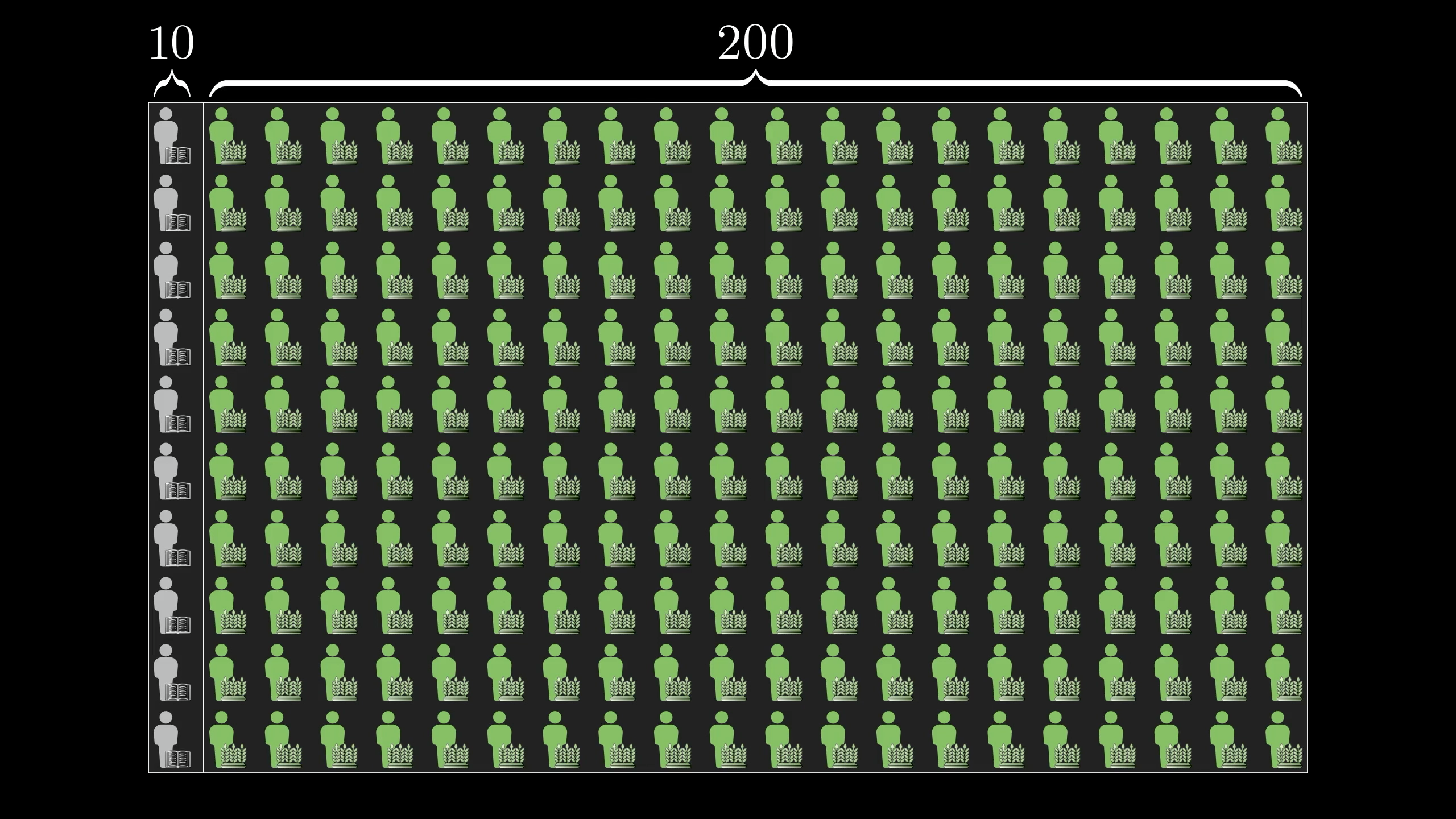 There are roughly 20 times as many farmers as librarians