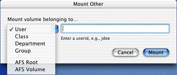your AFS file space, as a server on the desktop of your Macintosh,
