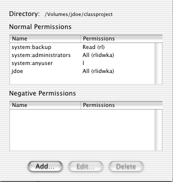 may be given for an individual user (such as jdoe, the owner in
