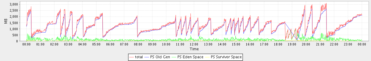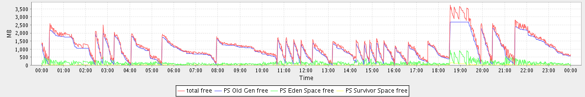 avg(total free) = 1173.00 avg(PS Old Gen free) = 1027.40 avg(PS Eden Space free) = 133.30 avg(PS Survivor Space free) = 12.31