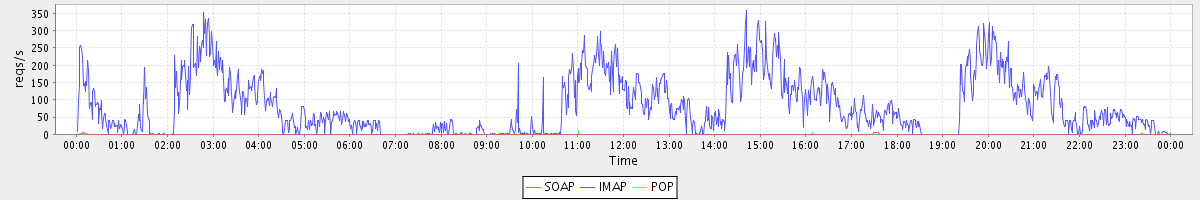 Host zm02.stanford.edu: Mailboxd: Request Rate by Client Protocol