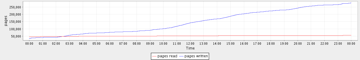 avg(pages read) = 51811.18 avg(pages written) = 146987.55