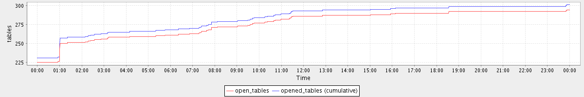 avg(open_tables) = 275.92 avg(opened_tables (cumulative)) = 282.88