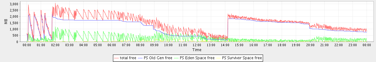 avg(total free) = 1482.42 avg(PS Old Gen free) = 1197.17 avg(PS Eden Space free) = 258.93 avg(PS Survivor Space free) = 26.32