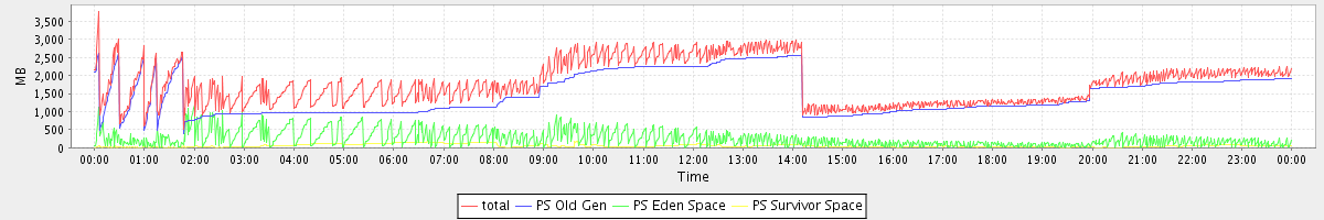 avg(total) = 1776.68 avg(PS Old Gen) = 1473.52 avg(PS Eden Space) = 248.16 avg(PS Survivor Space) = 55.00