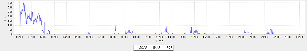 Host zm02.stanford.edu: Mailboxd: Request Rate by Client Protocol