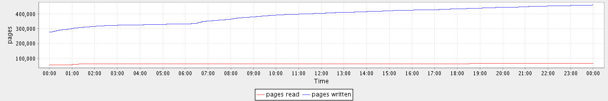 avg(pages read) = 62554.60 avg(pages written) = 389814.62
