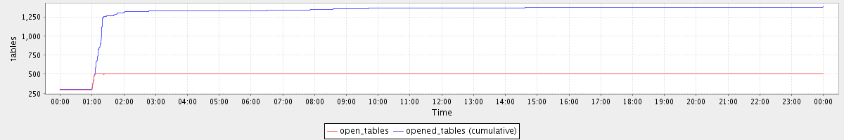 avg(open_tables) = 491.13 avg(opened_tables (cumulative)) = 1303.89