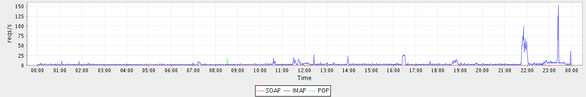 Host zm02.stanford.edu: Mailboxd: Request Rate by Client Protocol