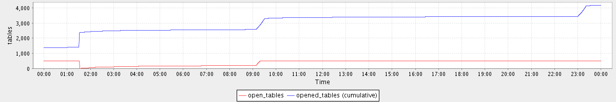 avg(open_tables) = 388.11 avg(opened_tables (cumulative)) = 3013.58