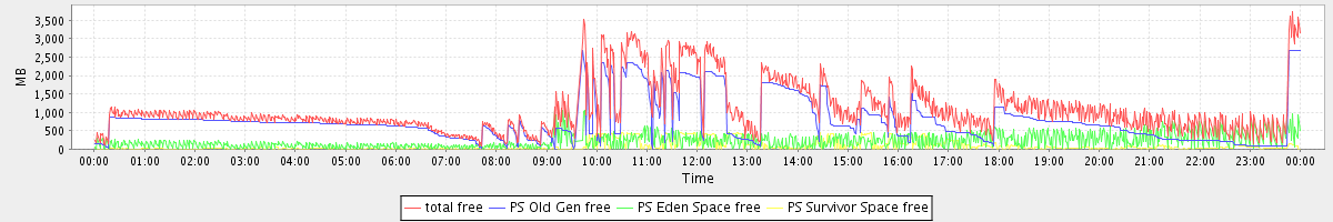avg(total free) = 1065.48 avg(PS Old Gen free) = 766.38 avg(PS Eden Space free) = 219.18 avg(PS Survivor Space free) = 79.93