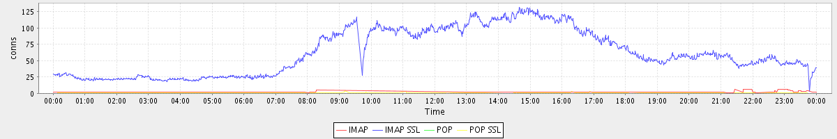 avg(IMAP) = 1.19 avg(IMAP SSL) = 62.70 avg(POP) = 0.00 avg(POP SSL) = 0.11