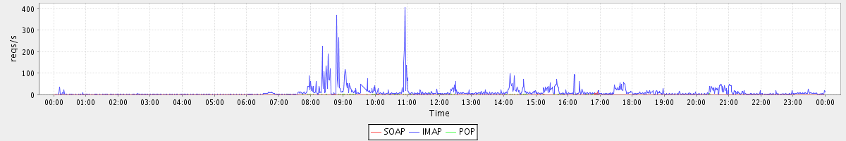 Host zm02.stanford.edu: Mailboxd: Request Rate by Client Protocol