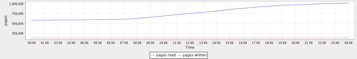 avg(pages read) = 129899.00 avg(pages written) = 770502.57