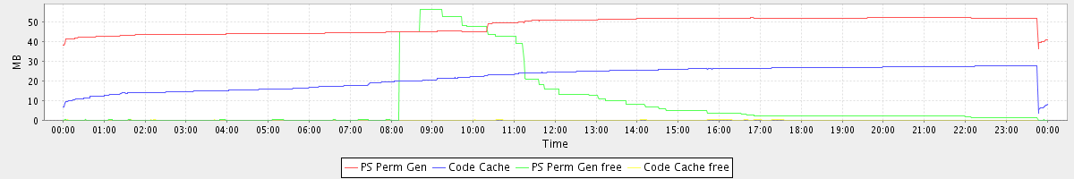 avg(PS Perm Gen) = 48.41 avg(Code Cache) = 21.87 avg(PS Perm Gen free) = 8.87 avg(Code Cache free) = 0.08