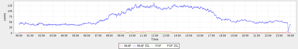 avg(IMAP) = 1.45 avg(IMAP SSL) = 71.74 avg(POP) = 0.00 avg(POP SSL) = 0.13