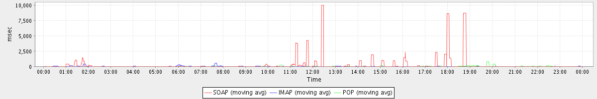 Host zm02.stanford.edu: Mailboxd: Response Time by Client Protocol