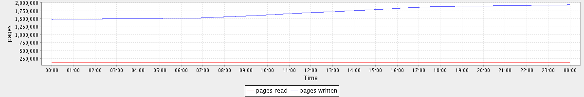 avg(pages read) = 129899.00 avg(pages written) = 1697149.87