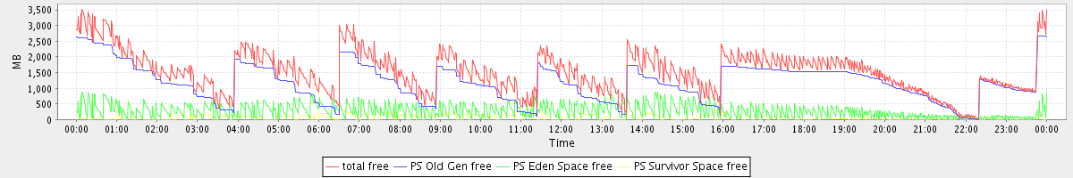 avg(total free) = 1519.65 avg(PS Old Gen free) = 1181.34 avg(PS Eden Space free) = 277.61 avg(PS Survivor Space free) = 60.71
