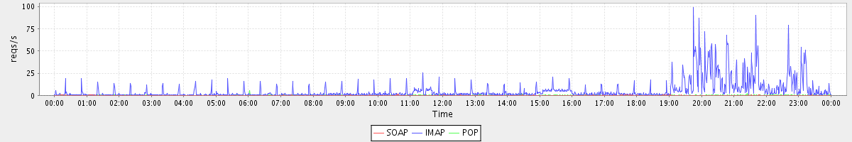 Host zm02.stanford.edu: Mailboxd: Request Rate by Client Protocol