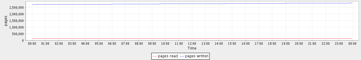 avg(pages read) = 129899.00 avg(pages written) = 2774730.97