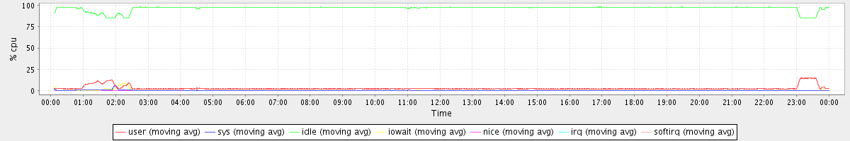 avg(user) = 2.70 avg(sys) = 0.28 avg(idle) = 96.77 avg(iowait) = 0.21 avg(nice) = 0.00 avg(irq) = 0.00 avg(softirq) = 0.00