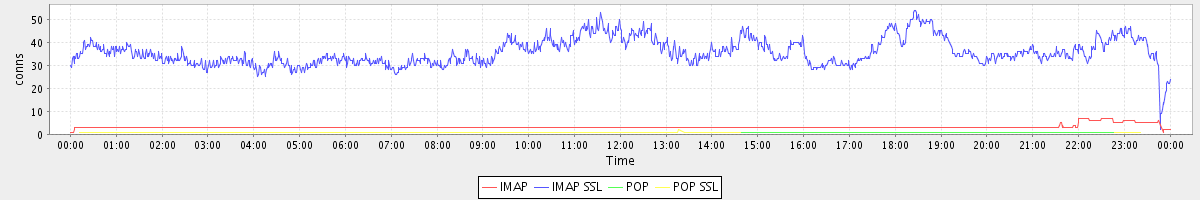 avg(IMAP) = 3.20 avg(IMAP SSL) = 35.73 avg(POP) = 0.00 avg(POP SSL) = 0.05