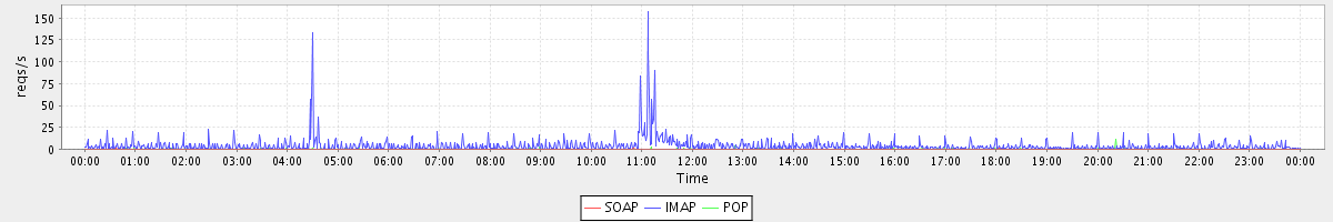 Host zm02.stanford.edu: Mailboxd: Request Rate by Client Protocol