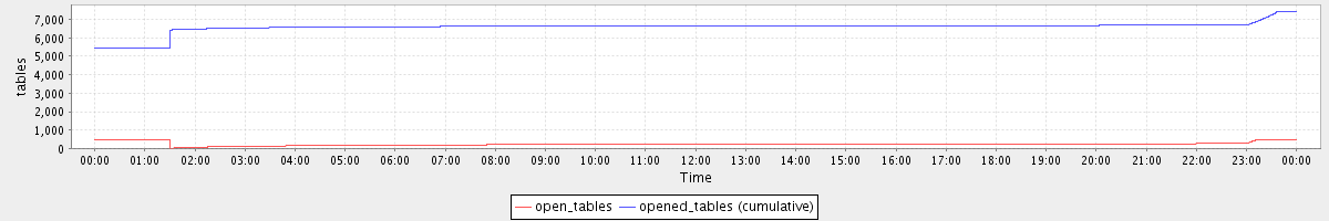 avg(open_tables) = 241.97 avg(opened_tables (cumulative)) = 6583.73