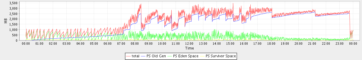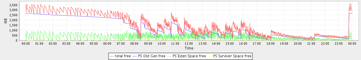 avg(total free) = 1523.27 avg(PS Old Gen free) = 1144.37 avg(PS Eden Space free) = 336.85 avg(PS Survivor Space free) = 42.05