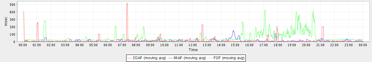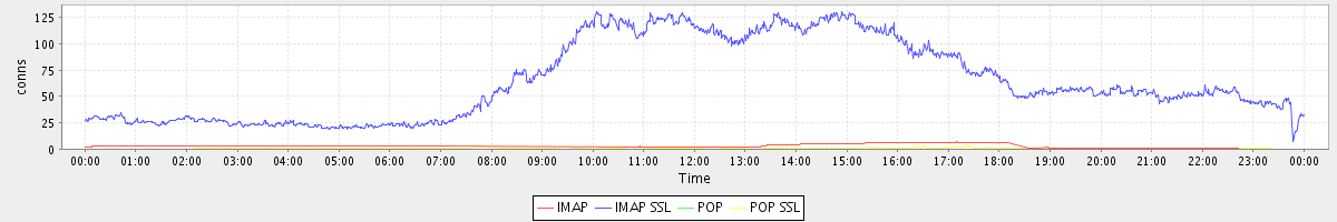 avg(IMAP) = 2.19 avg(IMAP SSL) = 64.58 avg(POP) = 0.00 avg(POP SSL) = 0.21