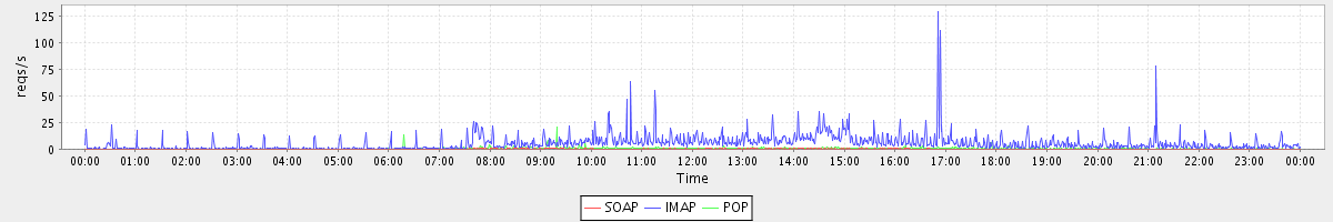 Host zm02.stanford.edu: Mailboxd: Request Rate by Client Protocol