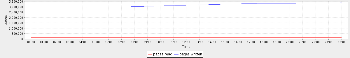 avg(pages read) = 129899.00 avg(pages written) = 3146040.85