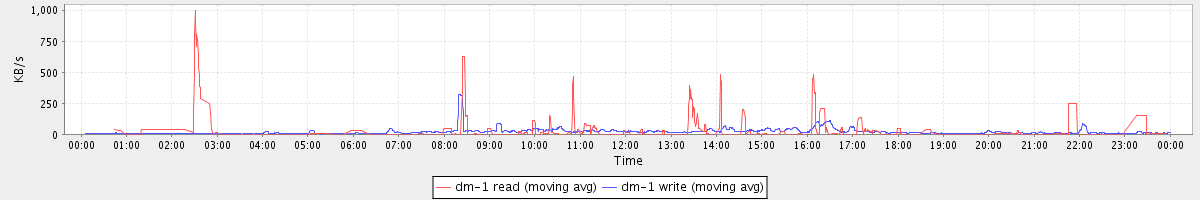 avg(dm-2 read) = 1.27 avg(dm-2 write) = 1.20