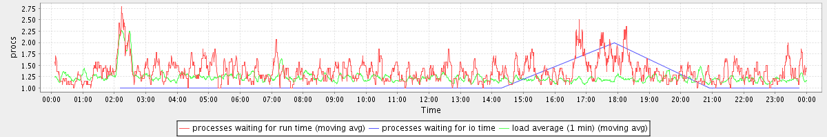 avg(processes waiting for run time) = 1.37 avg(processes waiting for io time) = 0.01 avg(load average (1 min)) = 1.23