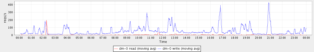 avg(dm-0 read) = 61.25 avg(dm-0 write) = 364.45