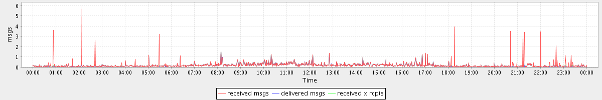 avg(received msgs) = 0.19 avg(delivered msgs) = 0.16 avg(received x rcpts) = 0.16