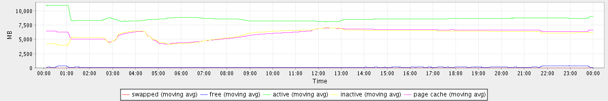 avg(swapped) = 0.22 avg(free) = 122.38 avg(active) = 8639.01 avg(inactive) = 5937.29 avg(page cache) = 6066.15