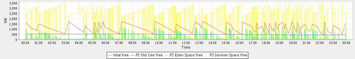 avg(total free) = 1117.90 avg(PS Old Gen free) = 497.91 avg(PS Eden Space free) = 169.52 avg(PS Survivor Space free) = 2266.30
