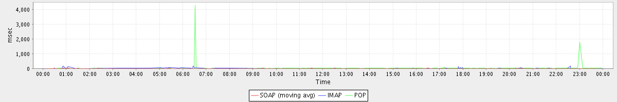 avg(IMAP) = 0.80 avg(IMAP SSL) = 641.64 avg(POP) = 201.65 avg(POP SSL) = 7742.99