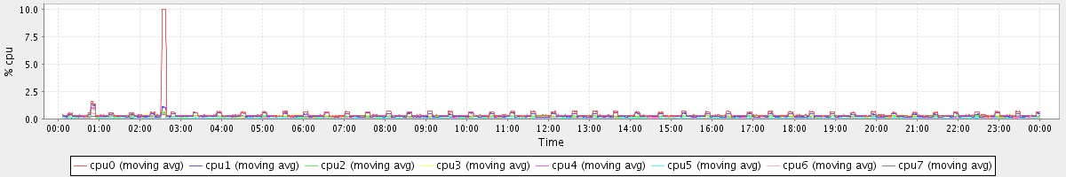 avg(cpu0) = 0.02 avg(cpu1) = 0.01 avg(cpu2) = 0.02 avg(cpu3) = 0.00 avg(cpu4) = 0.03 avg(cpu5) = 0.00 avg(cpu6) = 0.00 avg(cpu7) = 0.00
