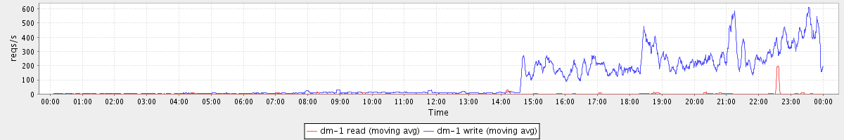 avg(dm-1 read) = 31.71 avg(dm-1 write) = 410.84