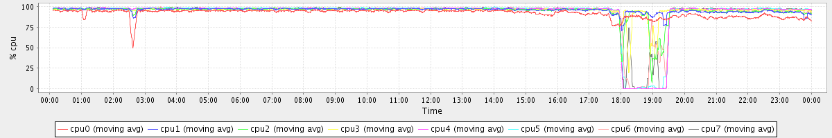 avg(cpu0) = 92.02 avg(cpu1) = 95.81 avg(cpu2) = 94.65 avg(cpu3) = 95.38 avg(cpu4) = 91.56 avg(cpu5) = 92.04 avg(cpu6) = 92.90 avg(cpu7) = 92.88
