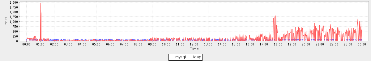 avg(mysql) = 126.81 avg(ldap) = 63.82