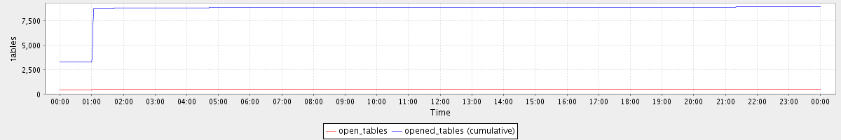 avg(open_tables) = 496.47 avg(opened_tables (cumulative)) = 8581.36