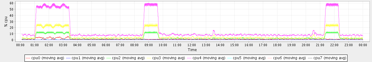 avg(cpu0) = 1.20 avg(cpu1) = 0.01 avg(cpu2) = 3.49 avg(cpu3) = 7.01 avg(cpu4) = 16.73 avg(cpu5) = 0.21 avg(cpu6) = 0.01 avg(cpu7) = 0.43