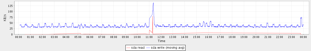 avg(sda1 read) = 0.04 avg(sda1 write) = 35.46